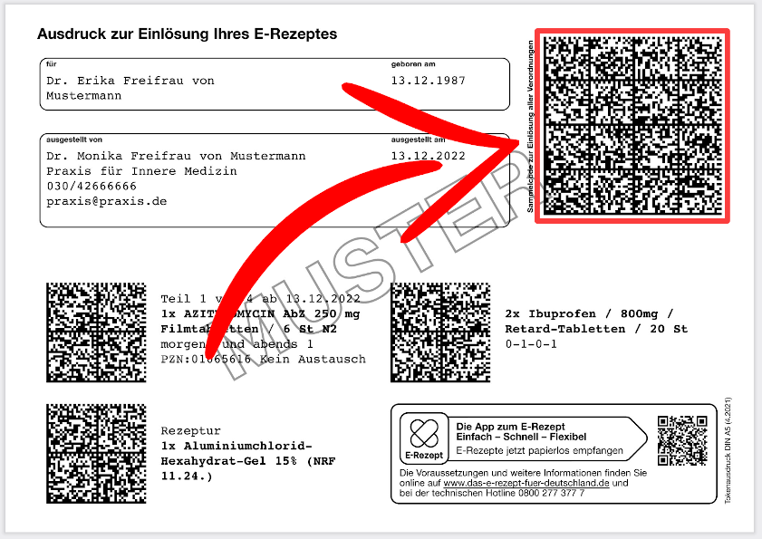 Hier können Sie das neue E-Rezept mit Ihrem QR-Code einlösen.